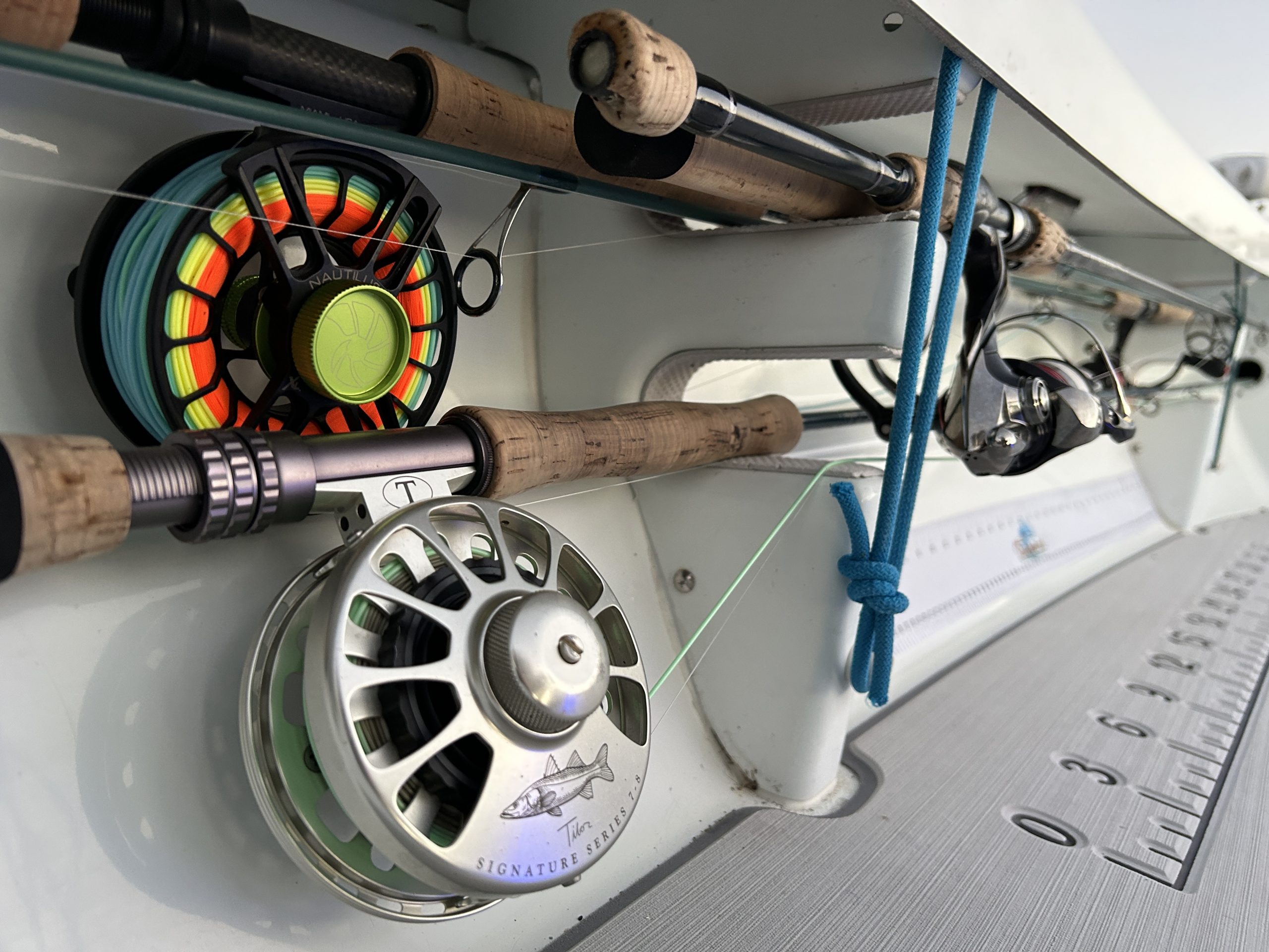 3 aft facing under gunnel rod holders that fit 9’ rods