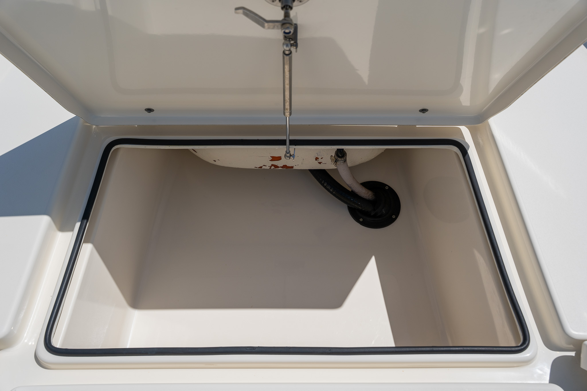•Removable 80qt Engel Cooler Under Leaning Post